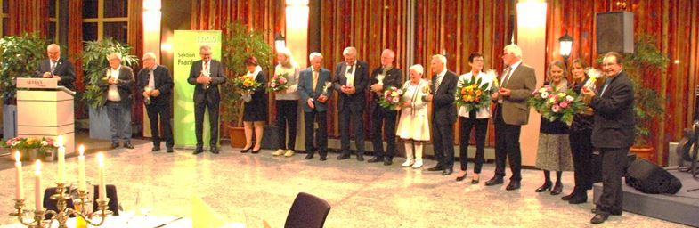Es wurden 18 Mitglieder für 25, 40 und 50 Jahren Treue zum DAV mit Blumen, Wein und Anstecknadeln geehrt.